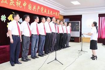 會上,黨委書記張大林首先講話,回顧了九十年來黨的發(fā)展歷程及帶領中國人民在各個歷史階段所取得的勝利和成就;講述了在黨的領導下,企業(yè)的不斷發(fā)展進步。之后,金明南董事長代表集團,對廣大黨員表示節(jié)日的祝賀,并對今后集團的黨建工作提出建議。會上,集團數(shù)十名黨員代表,面對鮮紅的黨旗重溫了入黨誓詞。