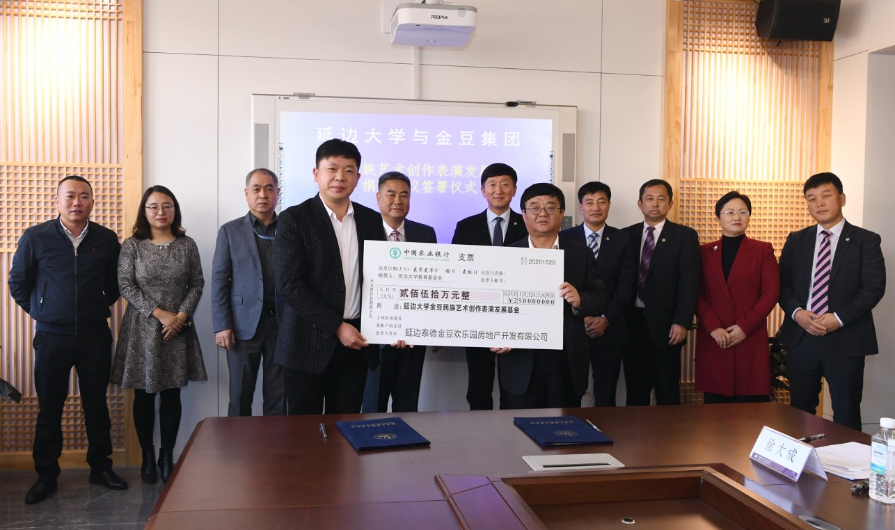 金豆民族藝術(shù)創(chuàng)作表演發(fā)展基金捐贈協(xié)議簽署儀式在延邊大學舉行